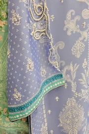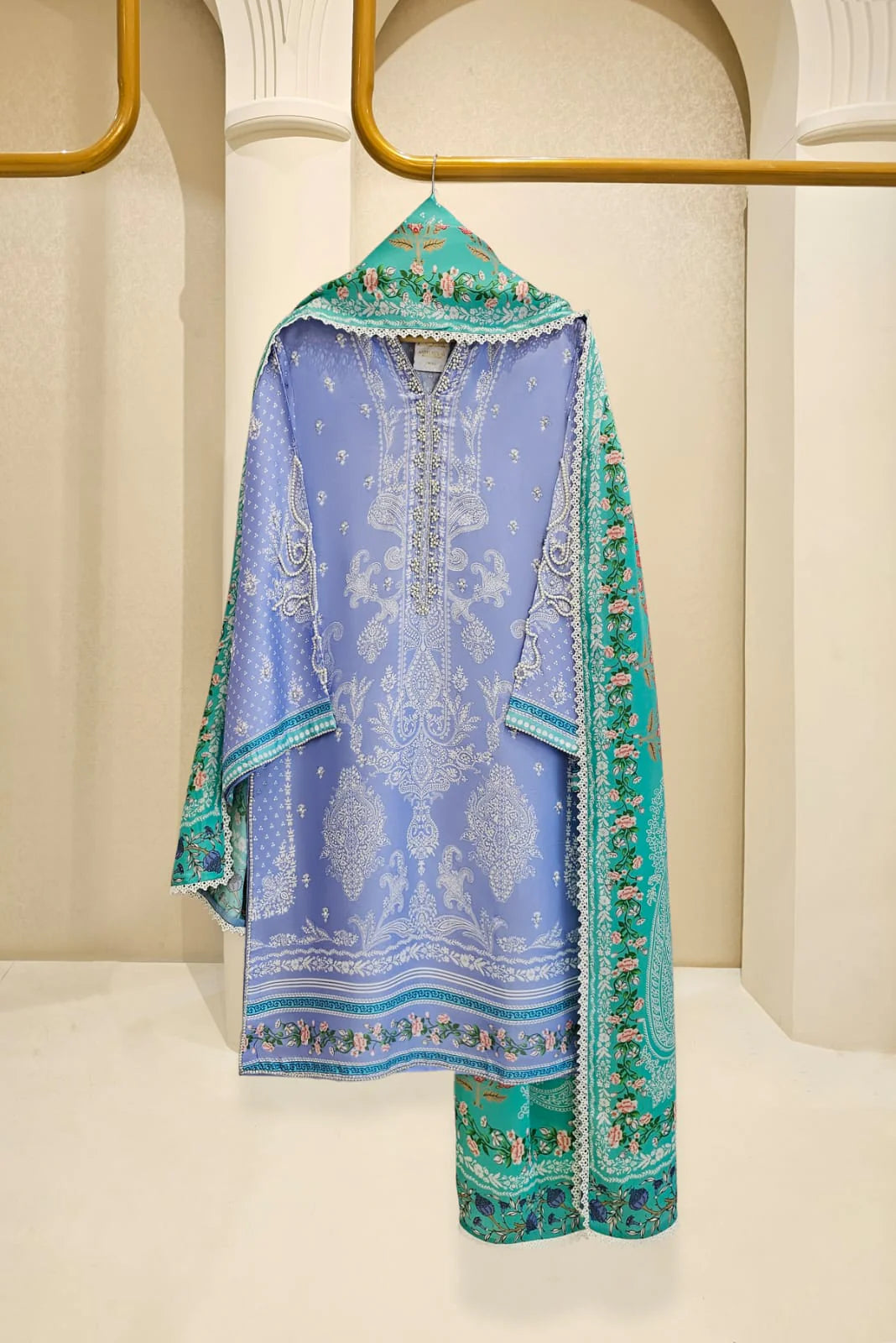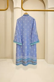 Experience the art of effortless elegance with the ethereal " Willow " ensemble. Offering a modern yet timeless silhouette on printed sheesha silk, adorned with delicate silver handwork featuring pearls, tiki and sequins. Paired with a matching pure raw silk trouser with an embroidered cutwork border, alongside a printed sheesha silk dupatta. This ensemble exudes grace and sophistication, making it a beloved and essential addition to any wardrobe. The length of the long kameez is 45 inches.