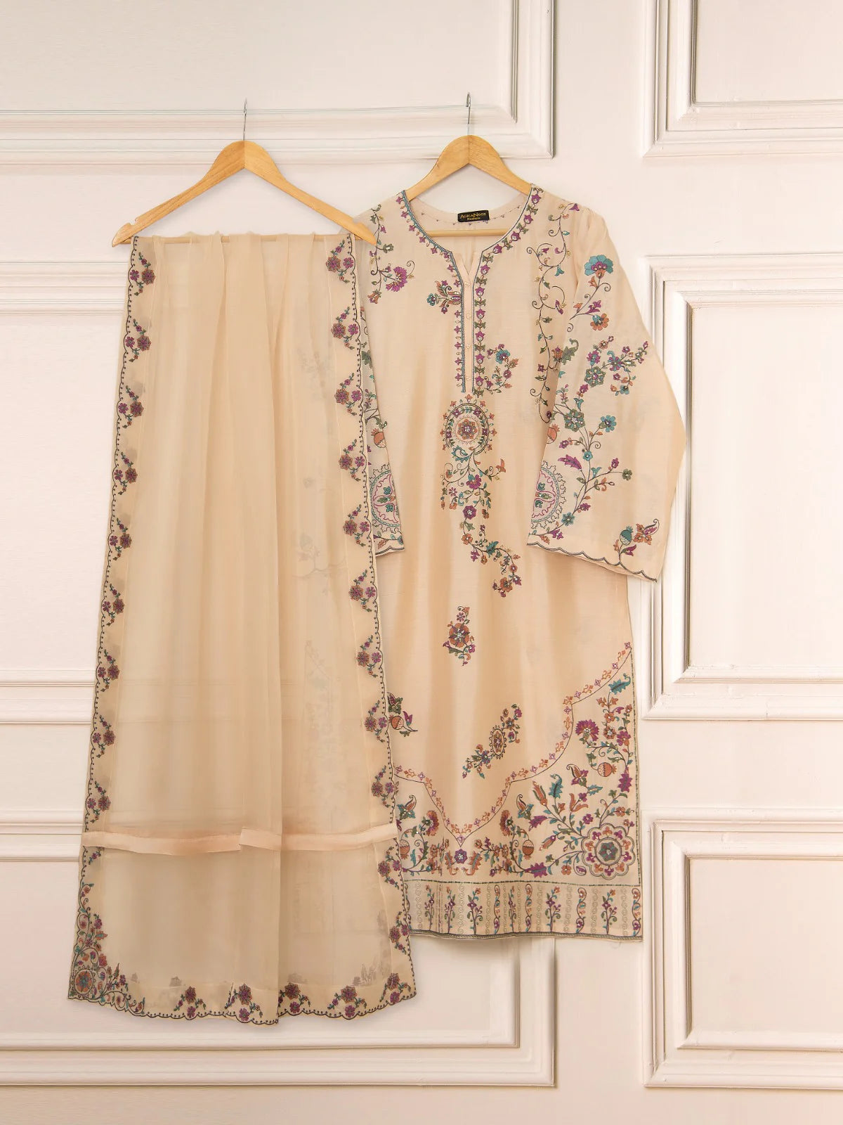 Agha Noor -Pure Khaddi Silk Embroidered Suit -3 PC