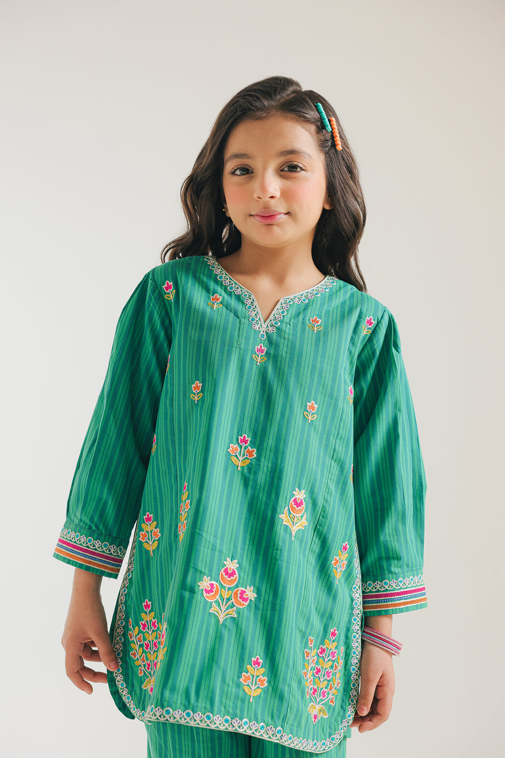 SHIRT - STRAIGHT FIT - ALINE HEM - ROUND NECK WITH V SLIT - FULL SLEEVES - SHORT LENGTH